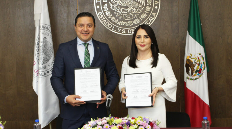 La presidenta del Tribunal Superior de Justicia y del Consejo de la Judicatura del Estado (TSJE-CJE), Anel Bañuelos Meneses y el titular del Organismo Público Descentralizado Salud de Tlaxcala (Sesa), Rigoberto Zamudio Meneses, signaron este día un convenio de colaboración que permitirá fortalecer el Módulo Médico ubicado en Ciudad Judicial, con el objetivo de mejorar la atención que se brinda a las y los trabajadores del Poder Judicial de Tlaxcala.