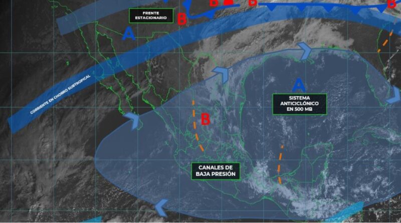 Asimismo, una circulación anticiclónica en niveles medios de la atmósfera, mantendrá el ambiente con sensación de frío a muy frío, durante la mañana y noche en entidades de la mesa del norte y la mesa central.