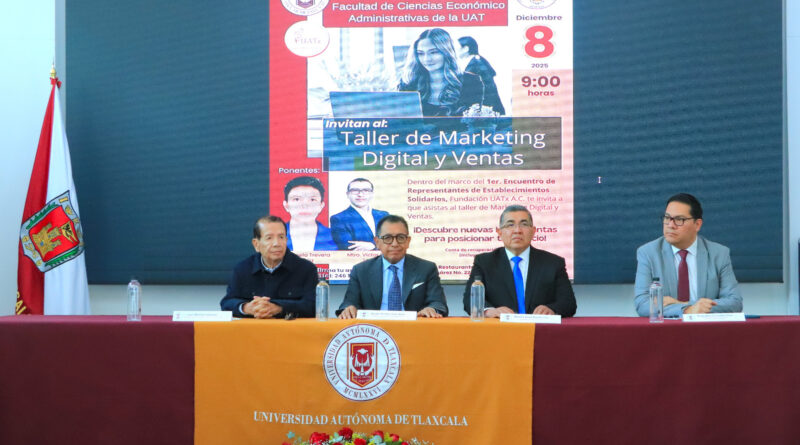 Como cierre de actividades, se impartió el 𝐓𝐚𝐥𝐥𝐞𝐫 𝐝𝐞 𝐌𝐚𝐫𝐤𝐞𝐭𝐢𝐧𝐠 𝐃𝐢𝐠𝐢𝐭𝐚𝐥 𝐲 𝐕𝐞𝐧𝐭𝐚𝐬 a cargo de la Doctora Acela Trevera Dávila y del Maestro Víctor Herrera Loranca, docentes de la Ciencias Económico Administrativas, quienes compartieron herramientas para mejorar el posicionamiento y la proyección de los establecimientos participantes.