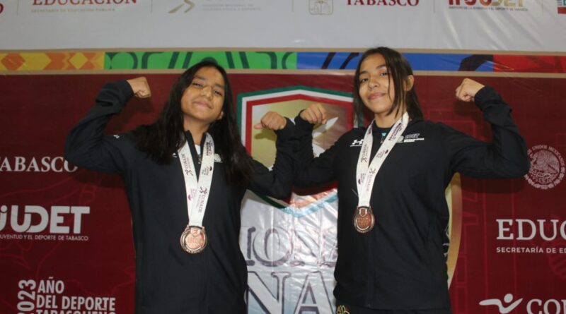 Las tlaxcaltecas Dana Medina Arellanos, de la categoría U17 49 kilogramos, y Renata Tezmol Moreno, de la U15 39 kilogramos, lograron la tercera posición cada una en la disciplina de luchas asociadas rama femenil, durante su participación en Nacionales Conade, competencia que se desarrolló en el Parque Tabasco.