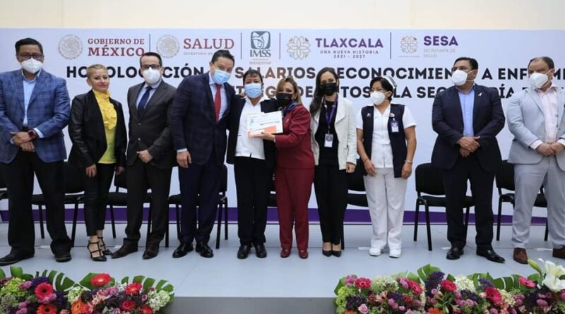 La gobernadora de Tlaxcala, Lorena Cuéllar Cisneros, entregó las constancias con las que 366 trabajadores del sector salud recibieron la homologación de sus salarios, luego de permanecer trabajando con un sueldo precario que no les permitía satisfacer sus necesidades económicas al 100 por ciento (%).