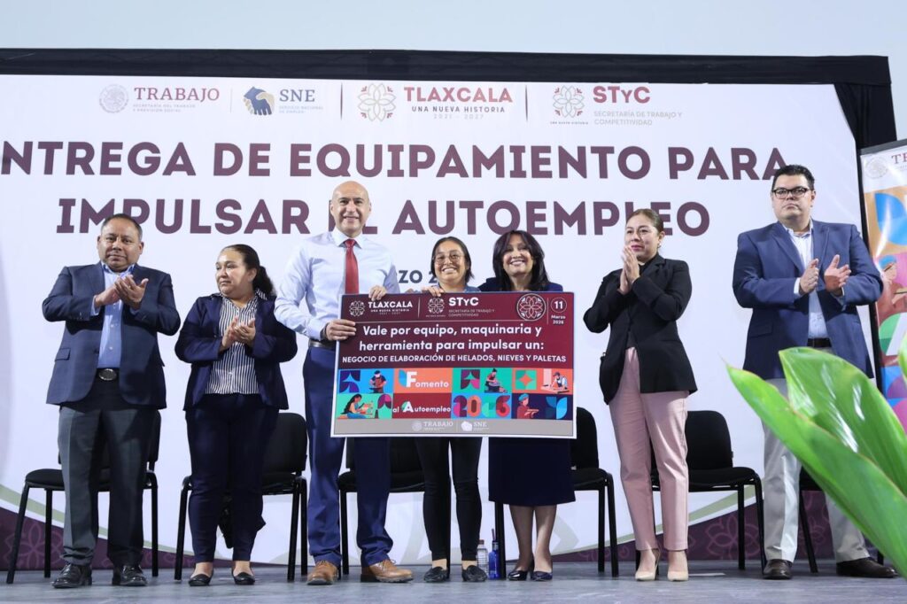 La gobernadora Lorena Cuéllar Cisneros encabezó la “Entrega de Equipamiento para Impulsar el Autoempleo” como parte del subprograma de la Secretaría de Trabajo y Competitividad (STyC), a través del Servicio Nacional de Empleo Tlaxcala (SNET), estrategia que brinda herramientas para iniciar o consolidar un negocio propio y fomenta la formalización, generación de empleos dignos y el impulso de la economía local.