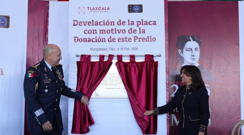 La gobernadora Lorena Cuéllar Cisneros entregó las escrituras del predio “Rancho San Antonio Zacapexco”, ubicado en el municipio de Atlangatepec, en donación a la Secretaría de la Defensa Nacional (Sedena), para la ampliación de la Estación Aérea Militar Número 9. Acompañada de autoridades militares, develó una placa conmemorativa por este acontecimiento.