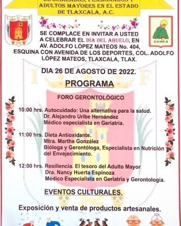 El Gobierno del Estado promueve el cuidado de los adultos mayores para garantizar su salud física y emocional, por lo que en el marco del Día del Abuelo, que se celebra el 28 de agosto, en coordinación con la agrupación “Tlaxcallan” de Jubilados, Pensionados y Adultos Mayores en el Estado de Tlaxcala, realizará el Foro Gerontológico.
