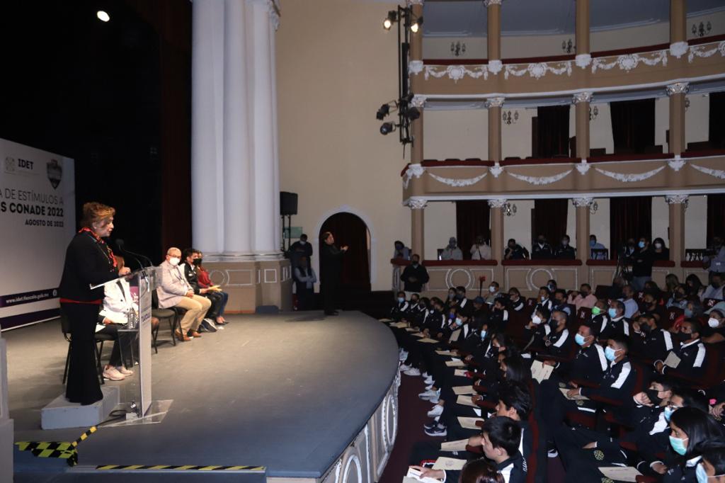 Durante la ceremonia de entrega de incentivos, desarrollada en el Teatro Xicohténcatl en la capital del estado, la mandataria estatal expresó que el interés de la administración que encabeza es que el deporte se convierta en un detonante para cambiar a la sociedad, unir a las familias y animar a otros jóvenes a iniciar en ese ámbito.