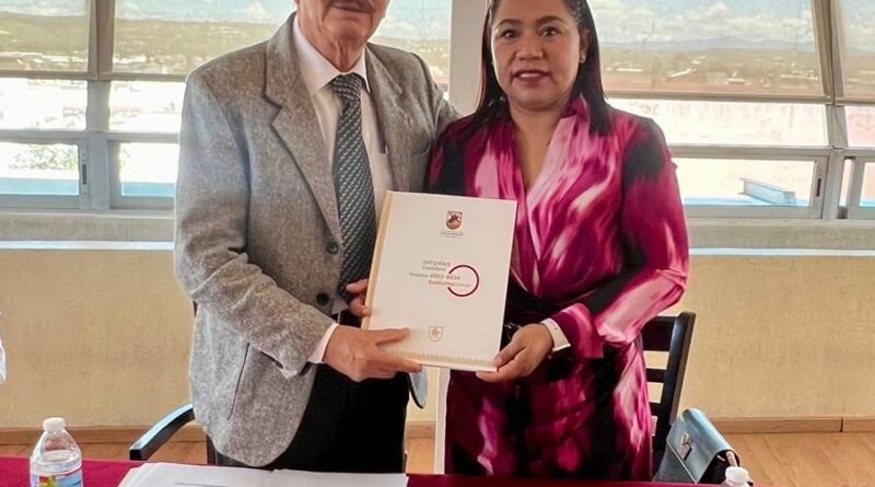 Durante la primera sesión solemne de Cabildo 2024, el Alcalde Gustavo Jiménez entregó el informe de resultados a la Síndico Municipal, María Estela Hernández Grande, a fin de cumplir con lo que marca la ley.