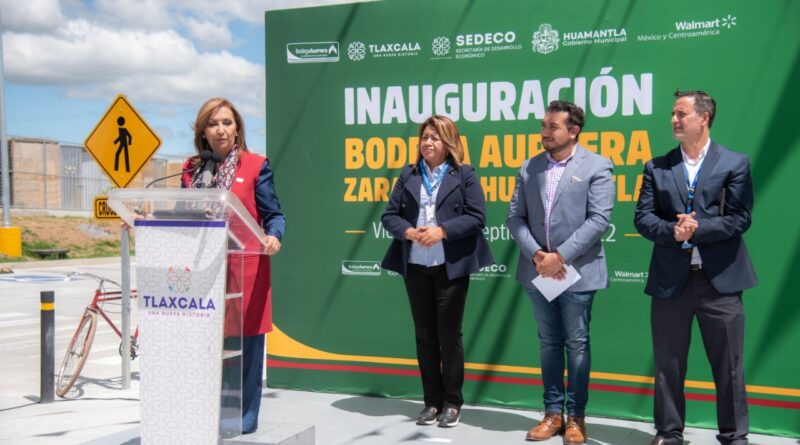 La gobernadora Lorena Cuéllar Cisneros encabezó el corte del listón inaugural de la tienda Bodega Aurrerá Zaragoza Huamantla, en la que el Grupo Walmart invirtió 99 millones de pesos para la construcción de esta nueva sucursal que generará 77 empleos formales directos.