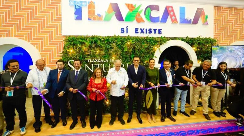 Inauguró gobernadora Lorena Cuéllar stand de Tlaxcala en tianguis turístico 2023