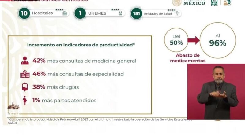 Robledo Aburto indicó que estos son los resultados que reflejan los últimos tres meses inmediatos, es decir, febrero, marzo y abril de 2023, comparado con los últimos tres meses antes de que entrara en funciones el IMSS–Bienestar en el territorio estatal.