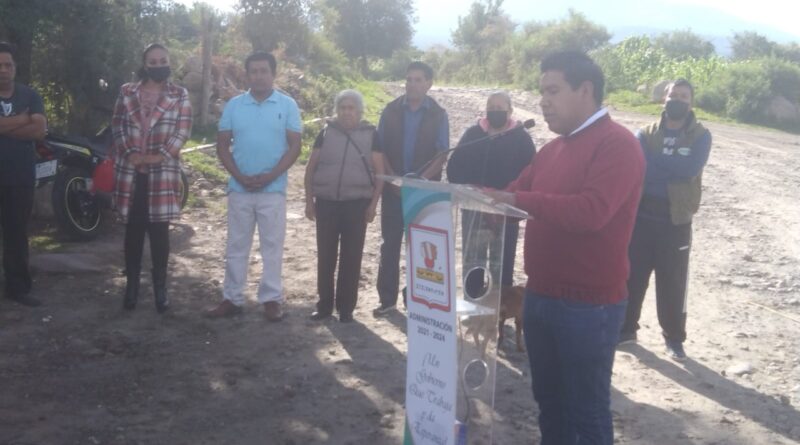 Inician adoquinamiento en calle Cuauhtémoc del barrio de Santa Cruz en Tetlanohcan