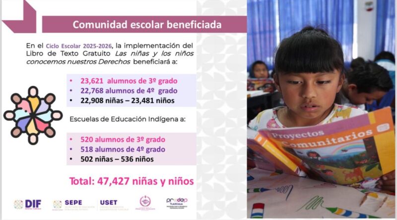 Autoridades del Gobierno de Tlaxcala y la Comisión Estatal de Derechos Humanos (CEDH) anunciaron la edición del libro de texto gratuito “Las niñas y los niños conocemos nuestros Derechos”, en beneficio de 47 mil niñas y niños de 3er y 4o grado de educación básica, incluidos mil 038 estudiantes de educación indígena, ya que se realizará la traducción en náhuatl.