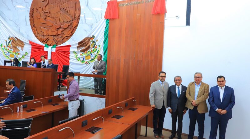 Inscriben en letras doradas el nombre de la UATx en el muro de honor del congreso local