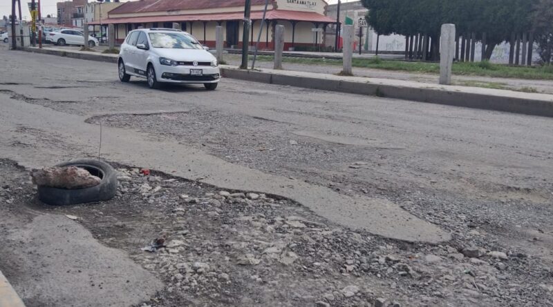 Intransitable la Avenida Ferrocarril de Chiautempan por múltiples baches