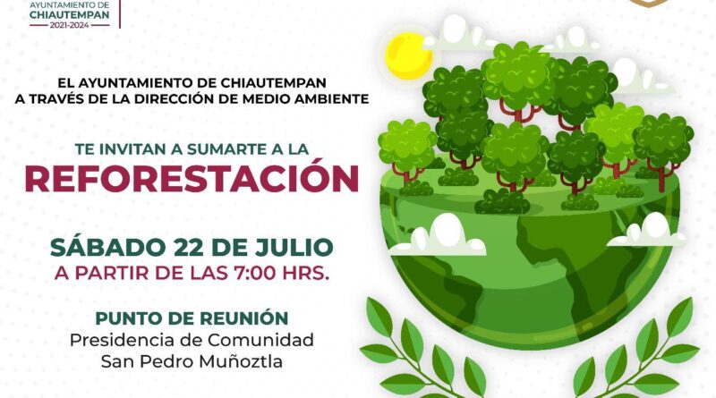 El Ayuntamiento de Chiautempan a través de la Dirección de Medio Ambiente, invita a la población en general a sumarse a la campaña de reforestación programada para este sábado 22 de julio.