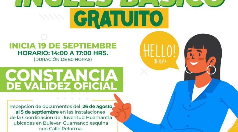 Con el propósito de fortalecer el desarrollo académico de las y los jóvenes huamantlecos, el gobierno municipal que preside Salvador Santos Cedillo, a través de la Coordinación de Juventud, invita a participar en el curso gratuito de Inglés Básico.