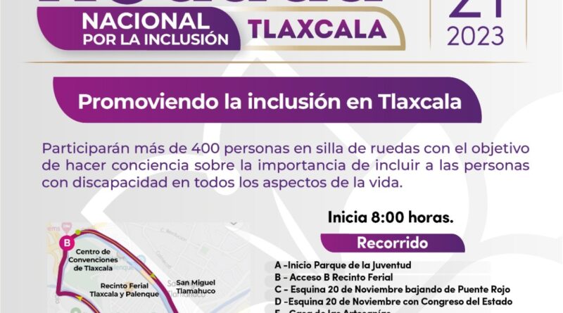 El Comité Consultivo de Bienestar y Desarrollo Social del Estado de Tlaxcala, en coordinación con la Secretaría de Bienestar Tlaxcala y la Asociación Vida Independiente México, invita a la población a participar en la Rodada Nacional por la Inclusión 2023, que se realizará este domingo 21 de mayo, a las 8:00 horas, por las principales calles de la capital del estado.