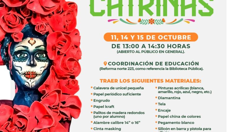 El Ayuntamiento de Huamantla, a través de la Coordinación de Educación, extiende una invitación a todas las niñas, niños, adolescentes y al público en general para participar en un taller gratuito de elaboración de catrinas en papel maché.