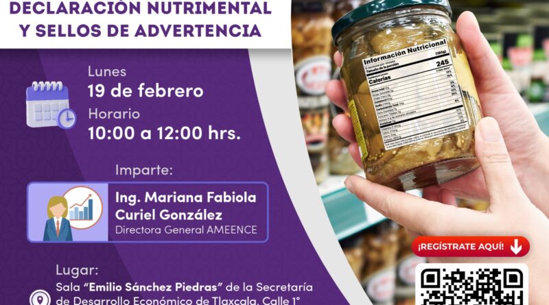 El H. Ayuntamiento de Huamantla y la Secretaría de Desarrollo Económico del Estado de Tlaxcala (Sedeco), invitan a todas y todos los emprendedores y empresarios del municipio a participar en la capacitación sobre “Elaboración de Declaración Nutrimental y Sellos de Advertencia”.