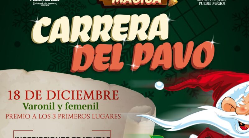 El Ayuntamiento de Huamantla, que encabeza Salvador Santos Cedillo, a través de la Coordinación del Deporte, invitan a las y los huamantlecos a participar en la Carrera del Pavo 2022, misma que se realizará el 18 de diciembre.