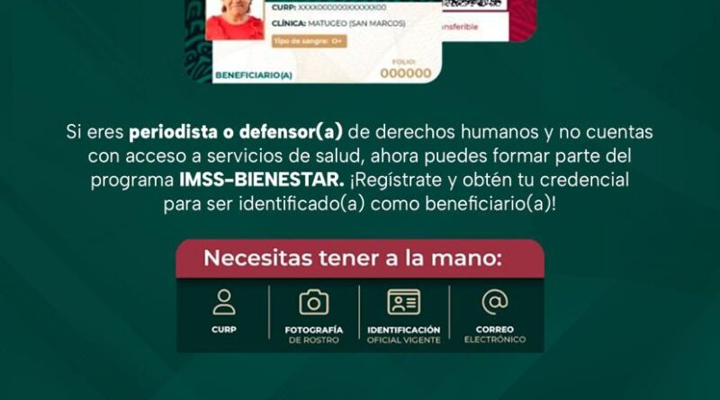 INVITA SEGOB A PERIODISTAS Y PERSONAS DEFENSORAS DE DERECHOS HUMANOS A REGISTRARSE AL IMSS-BIENESTAR