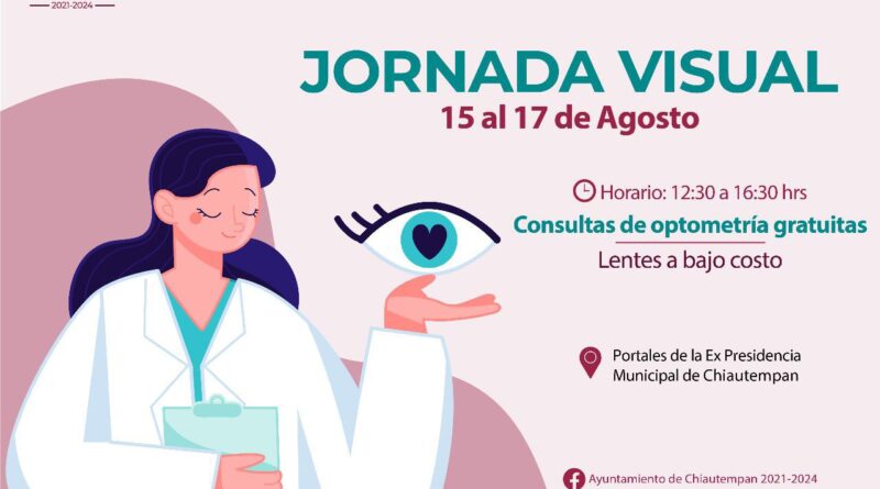 El Ayuntamiento de Chiautempan a través del Sistema Municipal para el Desarrollo Integral de la Familia (SMDIF) invita a la población a aprovechar la Jornada visual que se llevará a cabo del 15 al 17 de agosto.