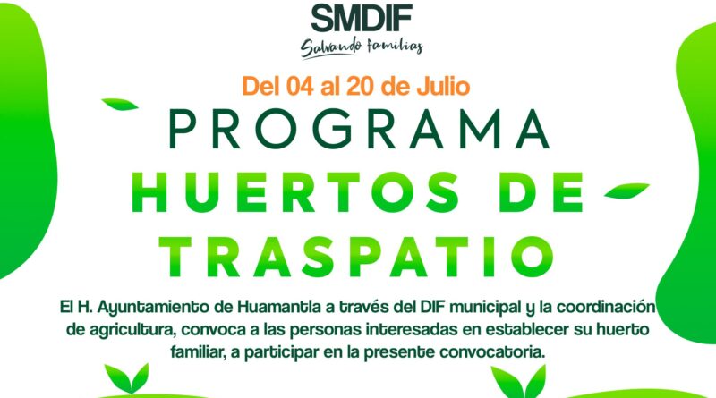 El H. Ayuntamiento de Huamantla, que preside Salvador Santos Cedillo, a través del Sistema Municipal para el Desarrollo Integral de la Familia (SMDIF) Huamantla, y la Coordinación de Agricultura y Desarrollo Rural del municipio, abren la convocatoria para participar en la segunda etapa del Programa “Huertos de Traspatio”.