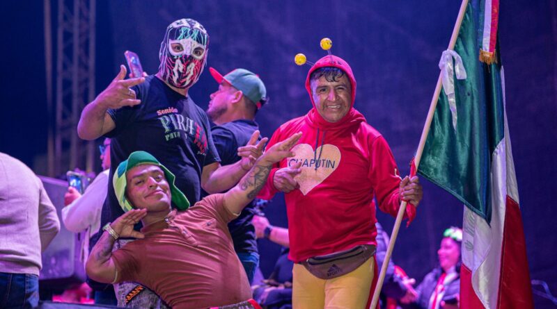 El alcalde y su familia, junto con integrantes del Ayuntamiento y la síndico, regidoras y regidores, así como presidentas y presidentes de comunidad, fueron testigos del espectáculo de luces pirotécnicas que iluminó el primer cuadro de la ciudad, y disfrutaron junto con la ciudadanía del baile popular, animado por Sonido Pirata y Los Welos de Aurelio Esparza, en una noche llena de unidad, alegría y orgullo patrio.