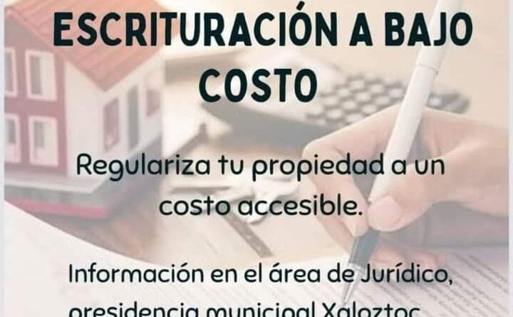 A fin de brindar apoyo a la economía de los ciudadanos y que estos puedan contar con documentos que los acrediten como legales dueños de sus terrenos, la administración municipal de Xaloztoc, que encabeza el presidente, Elías Nava Sánchez, dijo que aperturaron la campaña de escrituración a bajo costo.