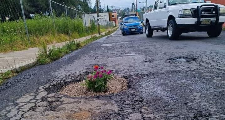 Vecinos de la comunidad de Ocotlán, perteneciente al municipio de Tlaxcala, sembraron flores en los baches de las calles Gabino A. Palma e Hidalgo, como forma de protesta porque el presidente municipal, Jorge Corichi Fragoso, no ha atendido las demandas de mejorar las vialidades a un año de haber tomado posesión.