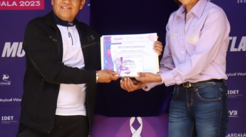 Este domingo Tetla de la Solidaridad, recibió el “Trophy Tour”, con juegos de exhibición, en este se mostró el Trofeo que se les entregará a los ganadores del Campeonato Mundial de Playa Tlaxcala 2023, fue el presidente municipal, Andrés Ramírez Galicia y el representante de la Gobernadora de Tlaxcala, Lorena Cuéllar Cisneros, el Secretario Particular, Gelacio Montiel Fuentes y Madai Pérez Carrillo, Directora del Instituto del Deporte de Tlaxcala, los encargados de develar este gran premio.