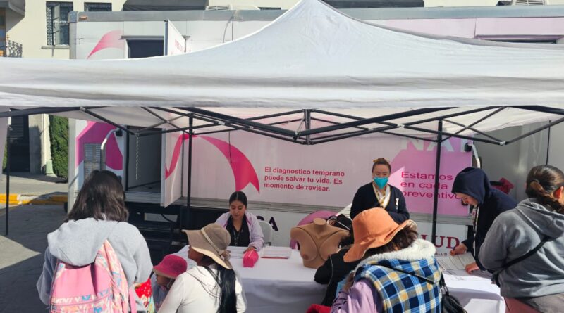 En el parque Juárez, frente a la alcaldía, personal de salud realizó exploraciones clínicas de mama a mujeres de 25 a 39 años, así como pruebas de papanicolau a la población femenina de 25 a 34 años.
