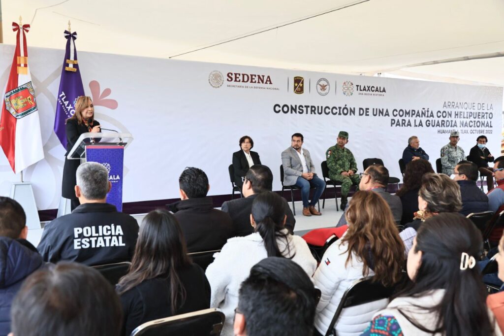 La gobernadora Lorena Cuéllar Cisneros encabezó el arranque de la construcción de una compañía de la Guardia Nacional (GN) con helipuerto, en el ejido de San Luis Huamantla, que servirá para apoyar al gobierno estatal y municipal en las tareas de seguridad pública.