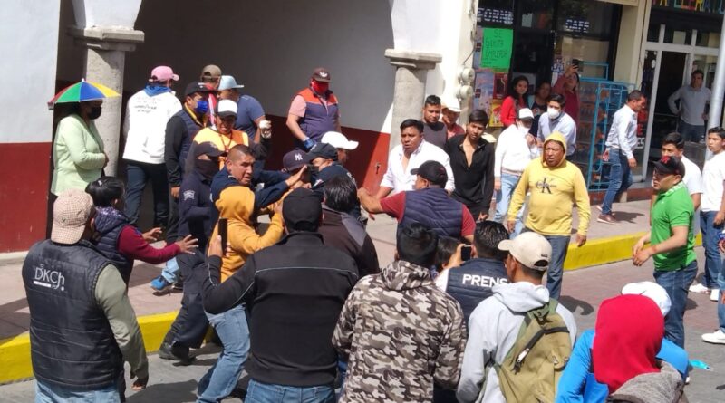 Manifestación pacífica de vecinos de Teolocholco se convierte en enfrentamiento