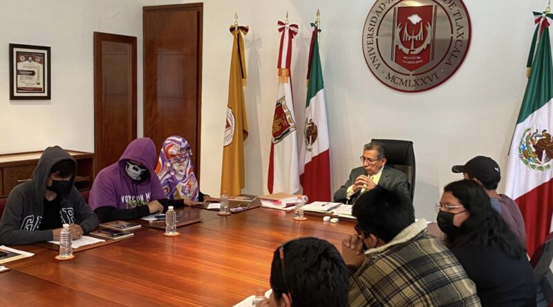 Con la total disposición al diálogo y a escuchar las demandas de los estudiantes de la Facultad de Filosofía y Letras, el Dr. Serafín Ortiz Ortiz, Rector de la UATx, recibió a una representación de alumnos para establecer acuerdos ante la inconformidad que prevalece por las agresiones de las que fue objeto una docente de la Facultad.