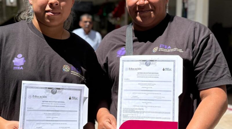 • Con apoyo del ITEA, y en coordinación con los ayuntamientos, se entregaron certificados de primaria y secundaria como parte de la estrategia para combatir el rezago educativo en el estado