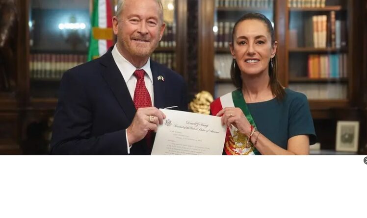 Luego de haber entregado este lunes sus cartas credenciales a la presidenta Claudia Sheinbaum en Palacio Nacional, el embajador de Estados Unidos en México, Ron Johnson, compartió un mensaje a través de sus redes sociales, en el que manifestó su compromiso de trabajar de manera conjunta con las autoridades mexicanas para generar bienestar, seguridad y prosperidad en ambos pueblos.