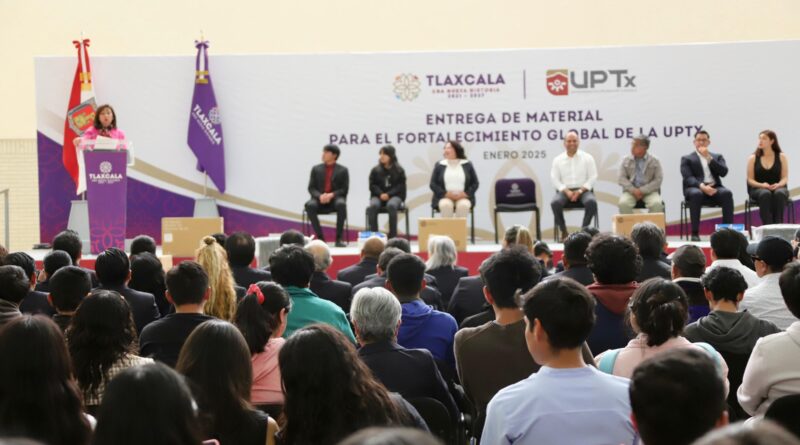 La gobernadora Lorena Cuéllar Cisneros entregó a la Universidad Politécnica de Tlaxcala (UPTx) material eléctrico y electrónico, útiles y equipos de oficina, artículos metálicos de construcción, accesorios, suministros y reparación de equipos de laboratorio, para deportes, de limpieza, tecnológico y de salud para el fortalecimiento de la institución.