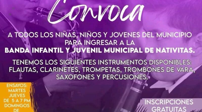 El ayuntamiento de Nativitas, preocupado por el desarrollo de habilidades artísticas, lanzó una convocatoria dirigida a niños y jóvenes de la demarcación para que aquellos que se vean interesados formen parte de la banda de música municipal.