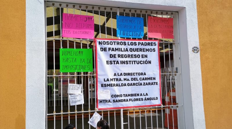 - Padres de familia de la escuela de la capital interrumpieron las clases para exigir que vuelva la maestra; el secretario de educación dijo que la exdirectora no desmintió las acusaciones que se le imputaron y ante ello se debe aplicar el reglamento