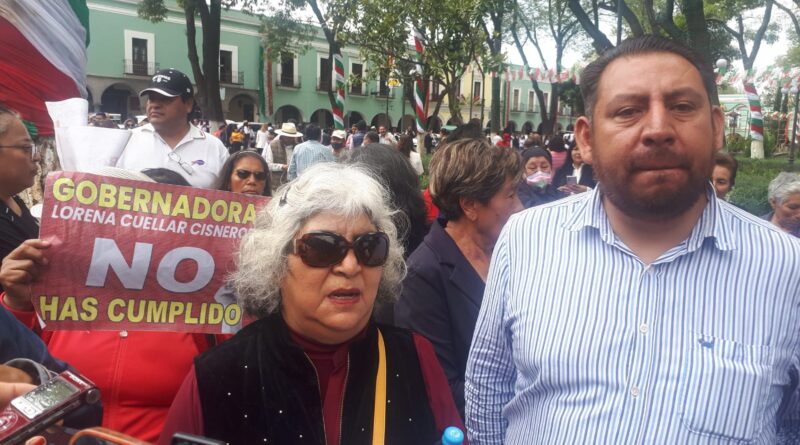Su protesta fue frente al edificio de Palacio de Gobierno en lo que fue la fijación de Bandos Solemnes conmemorativos al inicio de las fiestas patrias.