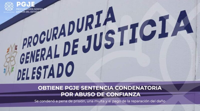 Obtiene PGJE sentencia condenatoria por abuso de confianza