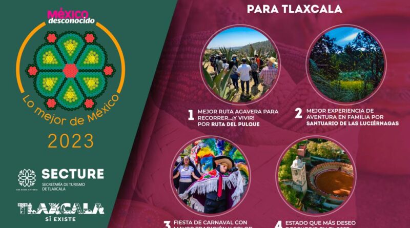 El gobierno del estado, a través de la Secretaría de Turismo (Secture), anunció que Tlaxcala está nominado nuevamente para los premios “Lo Mejor de México 2023”, que realiza la revista México Desconocido, en donde se reconoce a los mejores destinos y experiencias turísticas de todo el país.