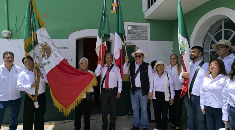 Omar Maldonado encabeza la pega de Bandos Solemnes de Fiestas Patrias en Santa Cruz Tlaxcala