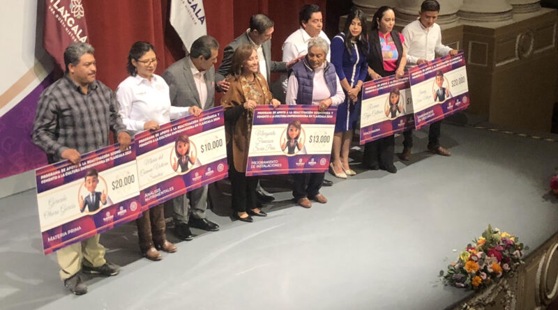 Durante el evento, se entregaron apoyo a negocios en la modalidad establecidos de 10 mil pesos cada una a Roxana Trejo Caltenco, de «Corazón de Ocelote» y María Francisca Soria Peña del «Invernadero Mago»; del miso modo en la modalidad de microempresas con 20 mil pesos cada uno a Gerardo Olvera García representante de Uniformes Escolares Hueyotlipan» e Irving Flores Villegas de la Lavandería San Miguel.