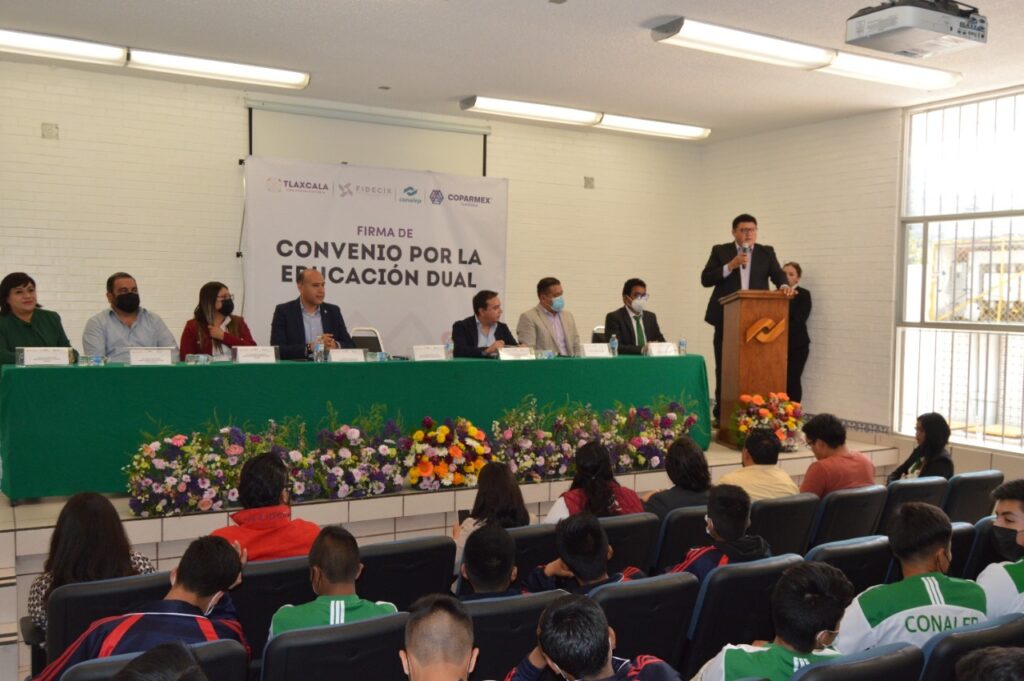El Colegio Nacional de Educación Profesional Técnica (Conalep) de Tlaxcala firmó convenio de colaboración con el Fideicomiso de Ciudad Industrial Xicohténcatl (Fidecix) y el Centro Empresarial de Tlaxcala, adherido a la Confederación Patronal de la República Mexicana (Coparmex), a efecto de que los estudiantes de los planteles sean vinculados a las empresas de los tres parques industriales en el Programa de Formación Dual, con la finalidad de adquirir y fortalecer habilidades, así como competencias laborales.
