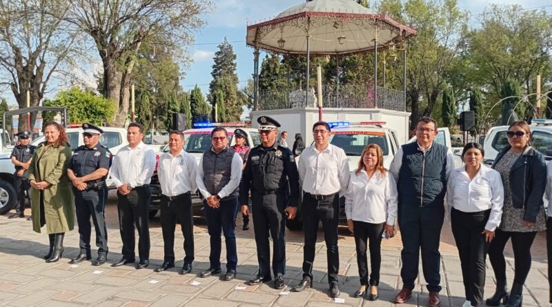 Para reforzar la seguridad alcalde de Santa Cruz Tlaxcala entregó 6 nuevas patrullas y equipo