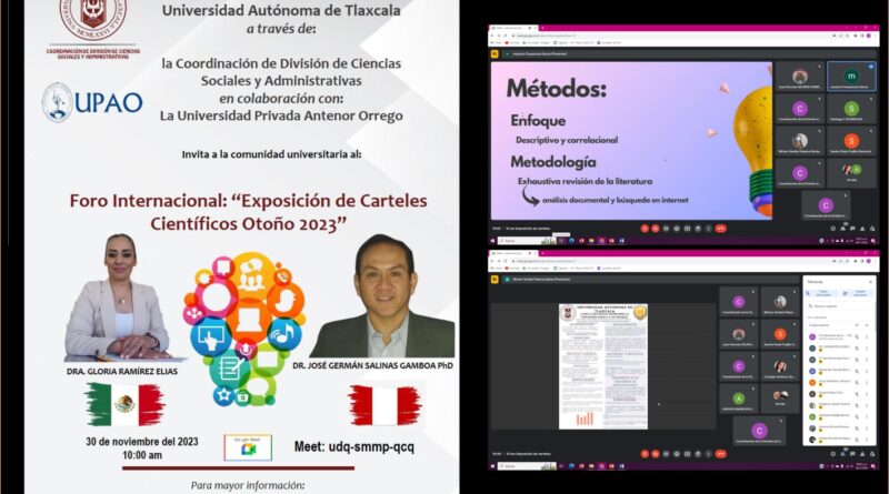 En el contexto de la cultura de paz y al eje transversal de la educación para los derechos humanos del Plan Institucional de Mejoramiento Acelerado (PIMA), la Universidad Autónoma de Tlaxcala (UATx), a través de la Coordinación de la División en Ciencias Sociales y Administrativas que dirige la Doctora Gloria Ramírez Elías, en colaboración con la Universidad Privada Antenor Orrego de Perú, efectuaron el foro internacional “Exposición de carteles científicos otoño 2023”, marco en el que los estudiantes presentaron documentos de rigor académico, el cual contó con la presencia del Doctor José German Salinas Gamboa, docente de la institución del extranjero.