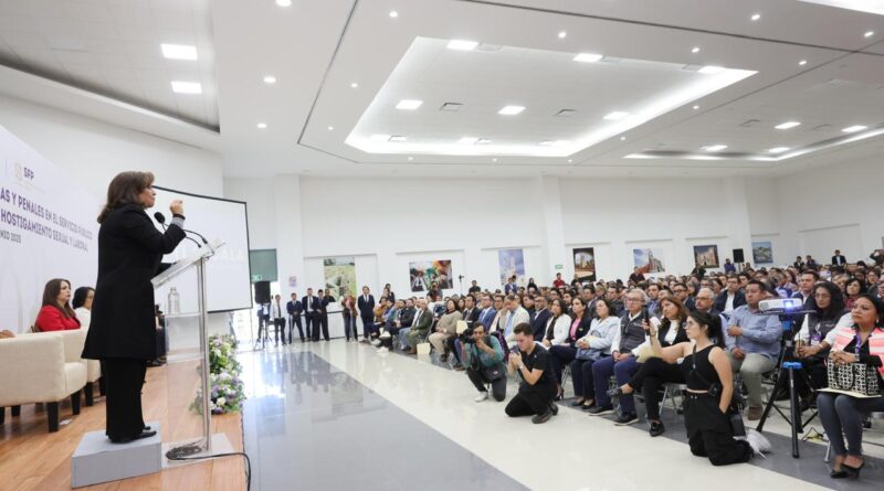 La titular del Ejecutivo asistió a la conferencia “Responsabilidades Disciplinarias y Penales en el Servicio Público en Razón de Género, Acoso y Hostigamiento Sexual y Laboral”, impartida por Lizbeth Xóchitl Padilla Sanabria, analista Jurídica del Sistema Nacional Anticorrupción, organizada por la Secretaría de la Función Pública del estado (SFP), con la finalidad de promover una cultura institucional de respeto, legalidad, equidad y cero tolerancia a la violencia.