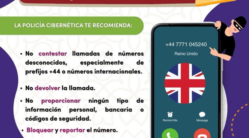 La Secretaría de Seguridad Ciudadana (SSC), a través de la Unidad de Policía Cibernética, emitió recomendaciones a la población para evitar que sea víctima de fraude u otros delitos, ante el aumento de casos de llamadas telefónicas desde números desconocidos con prefijos internacionales.