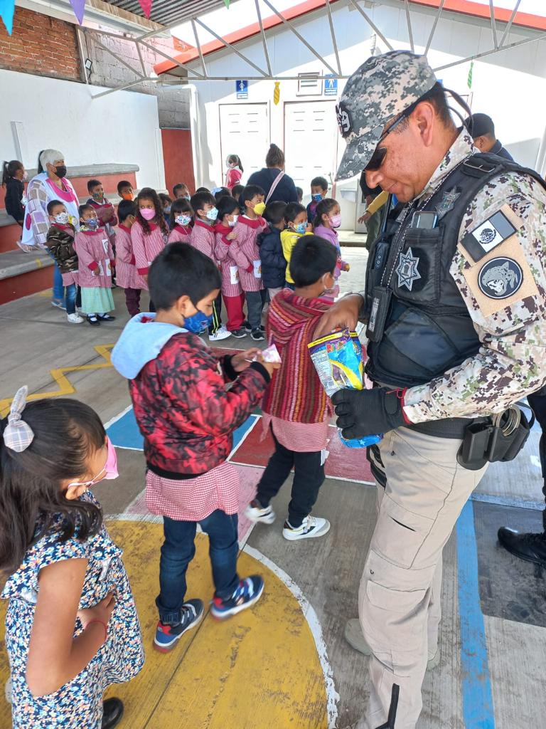 El equipo de Seguridad Pública, encabezado por Raymundo Fragoso Muñoz, agradeció el gran recibimiento que tuvieron por parte de los pequeños, padres de familia y directivos.